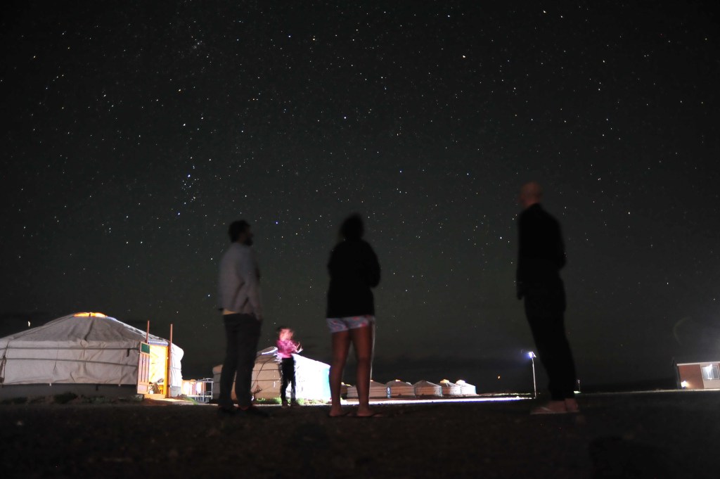 - Place the camera on the tripod nice and low – I set it up so that in the frame you could see the gers (yurts) with the night sky in the background