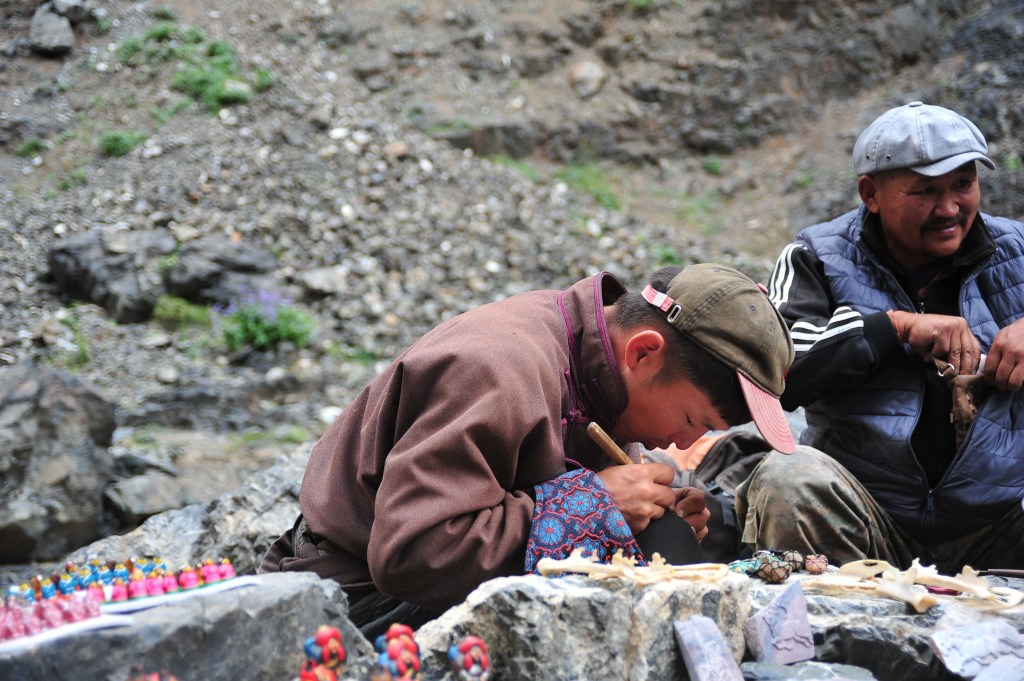 The fact that in the morning we were deep in the gobi desert and now we were about to enter the extremely mountainous and craggy landscape of the Gurvan Saikhan National Park, gives you in indication of how the landscape can change dramatically in Mongolia. We were luck enough to encounter several Siberian Ibex, their large, curved distinctive horns make them easier to spot from a distance, silhouetted against the sky. On the ground there were little pikas running around everywhere, their mouths full of grass and flowers. The area is also home to endangered Argali (wild sheep), huge bearded vultures, snow leopard, fox and gazelle. In face we spotted two gazelle on the drive to the valley, they raced past our vehicle and stopped a few metres away! A group of travellers from Taiwan pointed out an eagle’s nest high up on the hillside which was great. Many tourists are guided through the valley on horses, it was a fantastic experience seeing the skilled local horsemen guide their horses through this beautiful landscape. Another highlight was seeing a herd of yak charge past us, throwing up lots of dust in their wake. We continued to Gobi Erdene ger camp – bang in the middle of the flat desert landscape again – stunning! We were so lucky with the weather which was beautiful and really clear.